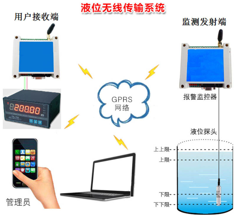 首先,檢測發(fā)射端通過液位傳感器采集水位,并通過GPRS 網(wǎng)絡(luò)將水位數(shù)據(jù)上傳至云平臺(tái),這樣用戶就可以通過手機(jī)或者電腦查看實(shí)時(shí)水位。