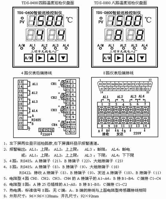 3.8、TDS-0400四路、TDS-0800八路數(shù)字溫度巡檢測控儀