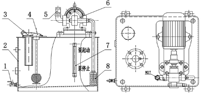 5、出油口        6、齒輪油泵       7、液位計        8、濾油器